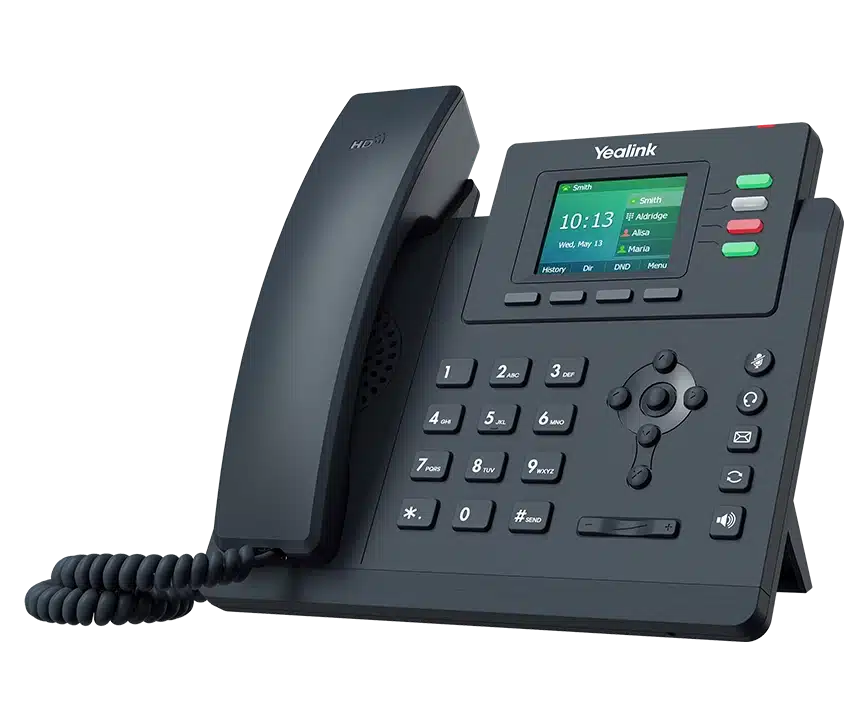 Le Yealink SIP-T33G intègre un écran couleur 2,4 pouces (320×240 pixels) rétro-éclairé, offrant une interface claire pour appels, répertoire et navigation. Il dispose de deux ports RJ45 Gigabit — l’un pour le réseau, l’autre pour relier un PC — avec prise en charge PoE, permettant une installation simple sans adaptateur secteur. Grâce à ses 4 comptes SIP, il supporte plusieurs lignes ou utilisateurs depuis un seul poste, idéal pour les petites équipes ou services.